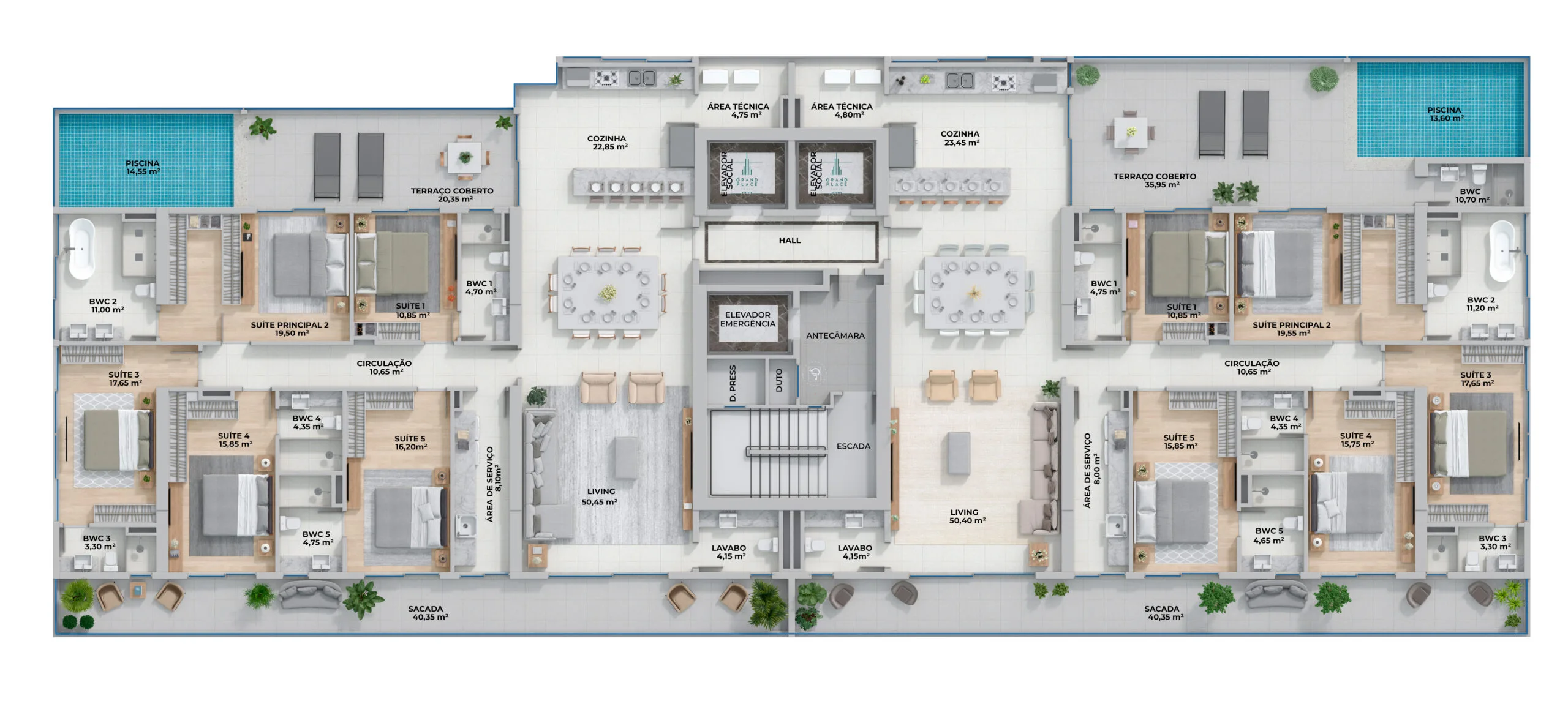 Boreal Tower was created to bring you the magnificent feeling of having nature as your constant companion. With an endless living room view and an obelisk architecture inspired by the lotus flower, Boreal brings to the table the glow of a precious jewel, radiating beauty in the middle of Atlântica Avenue.