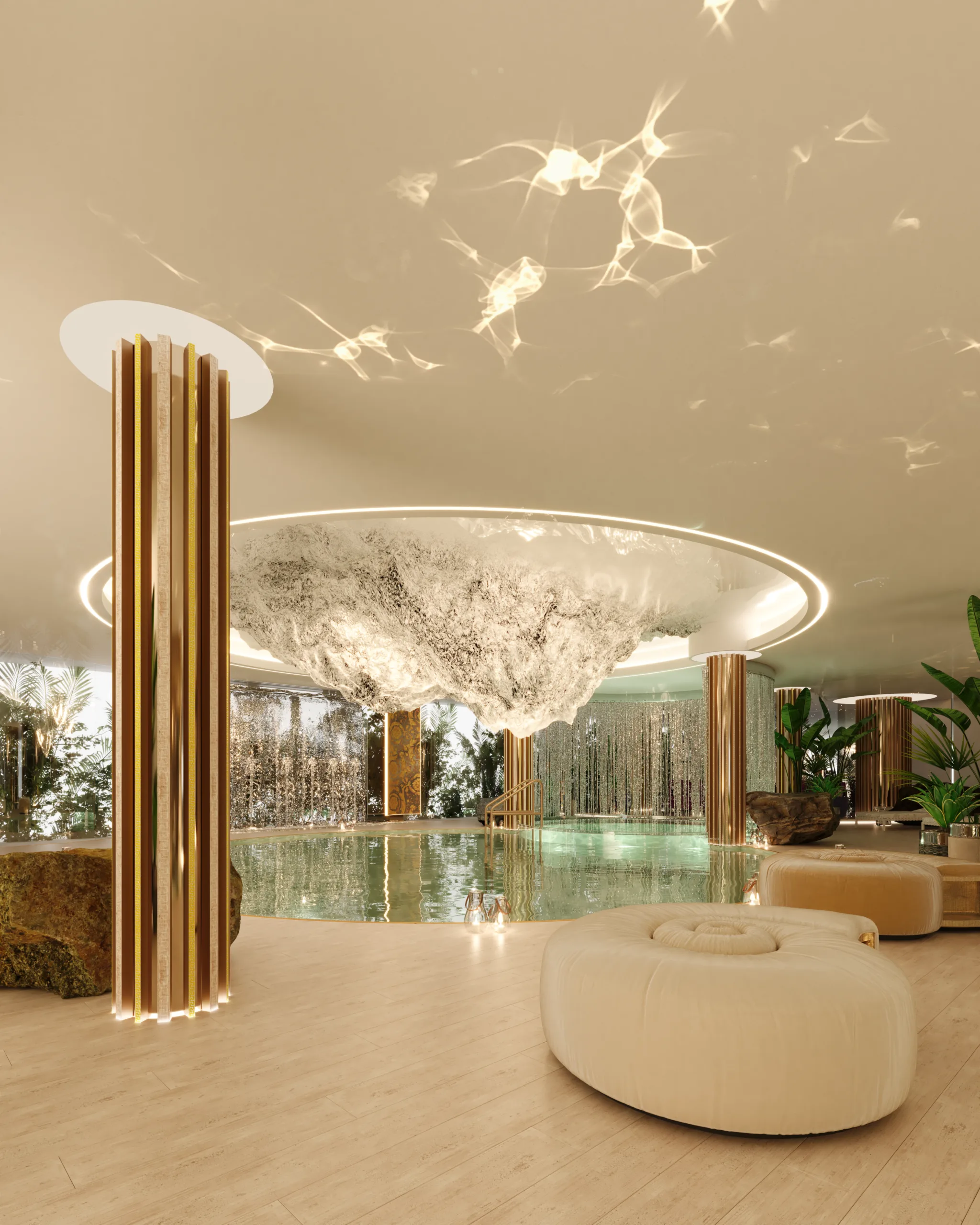 Delivered in December 2029, this penthouse sits within one of eight towers comprising the Atmosphere development—a 160,000-square-metre wellness compound designed in consultation with Tania Ginjas, a spa specialist whose portfolio spans Rosewood, Fasano, and the Copacabana Palace. The architecture adheres to the principles of Wellness Design, integrating material selection, spatial proportion, and biophilic elements to support physical and emotional equilibrium.