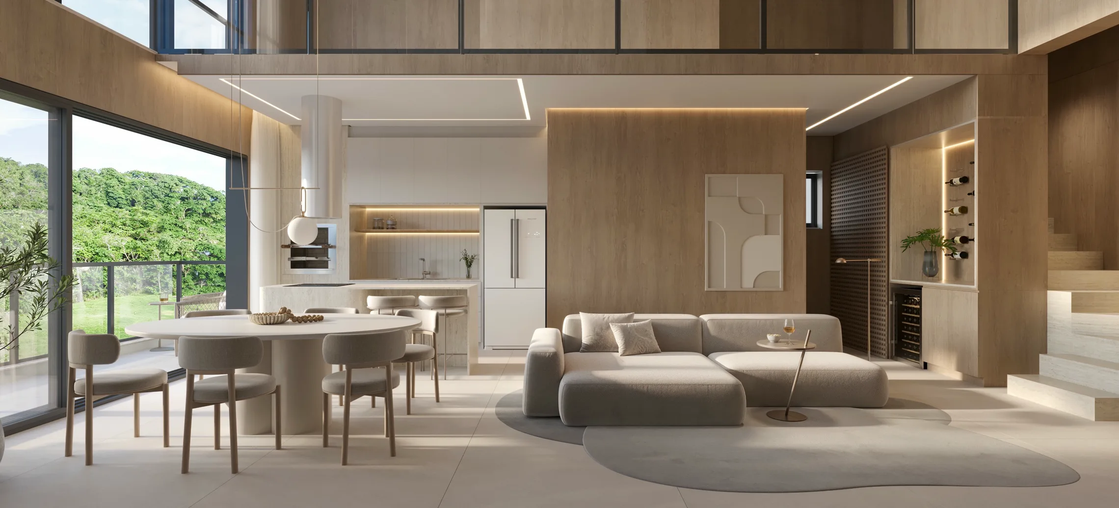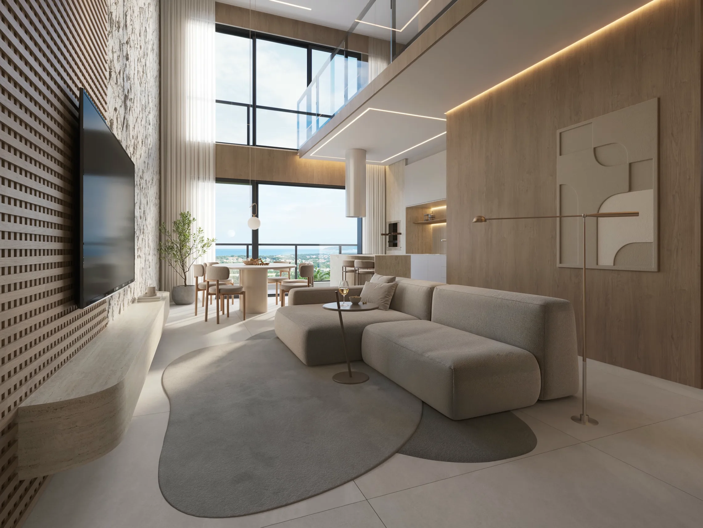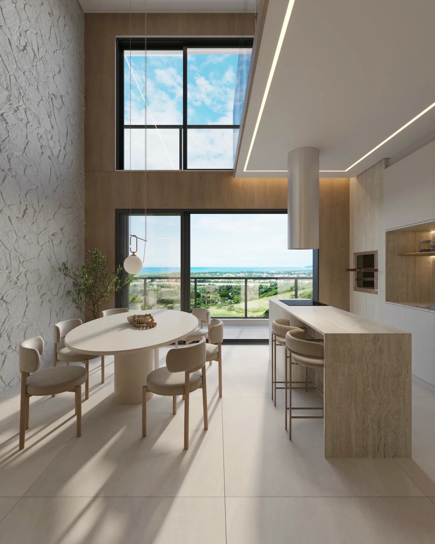 This 44.2 m² penthouse at Bellomonte Residence represents a compelling entry point into Florianópolis’ accelerating northern corridor. Developed by Domum Construções, the residence offers a refined one-bedroom layout with acoustic insulation, central air conditioning, and access to a private garden—a rare amenity in this typology. The unit is designed for efficiency without compromise: contemporary finishes, integrated hot water systems, and elevator access throughout.