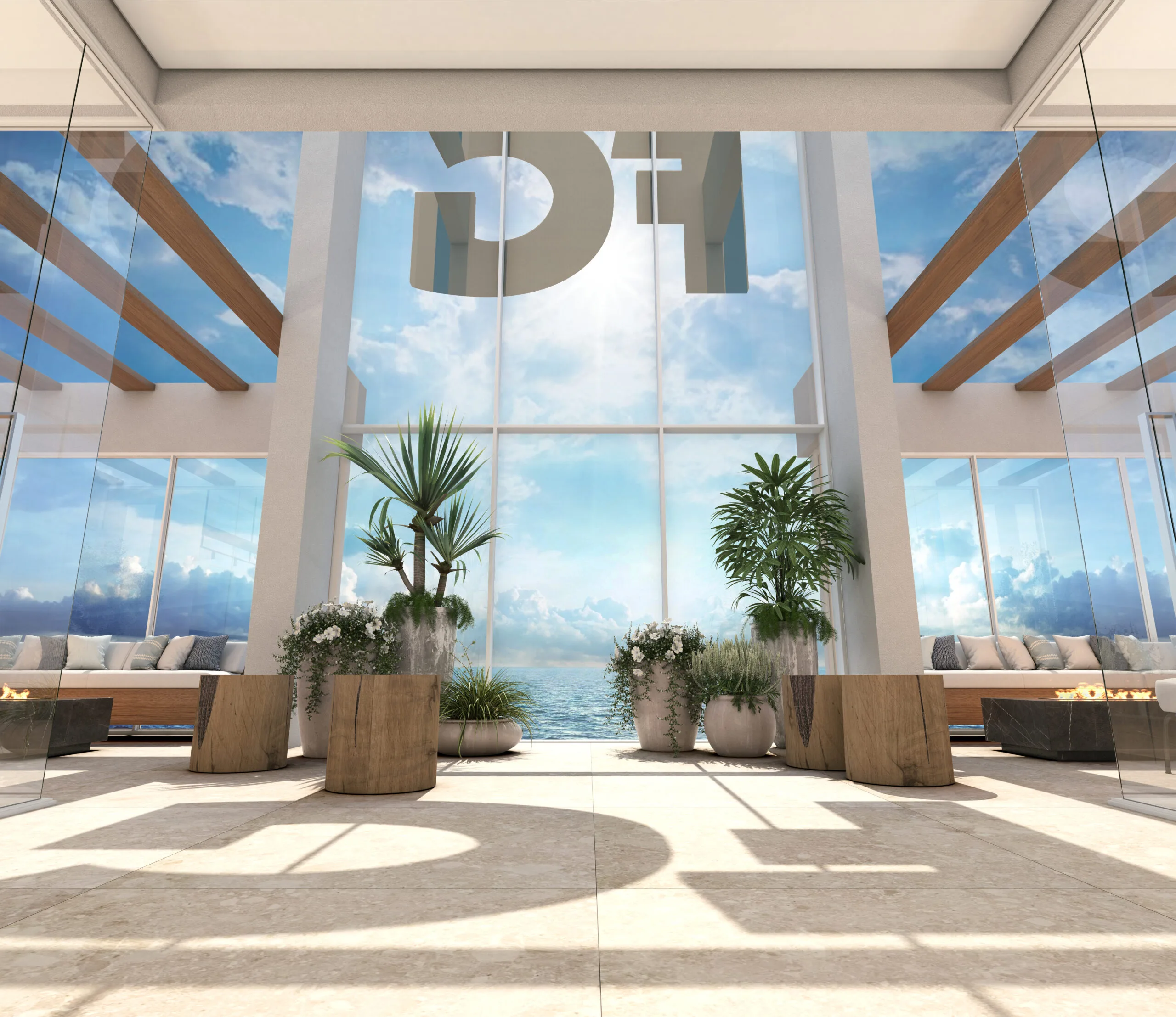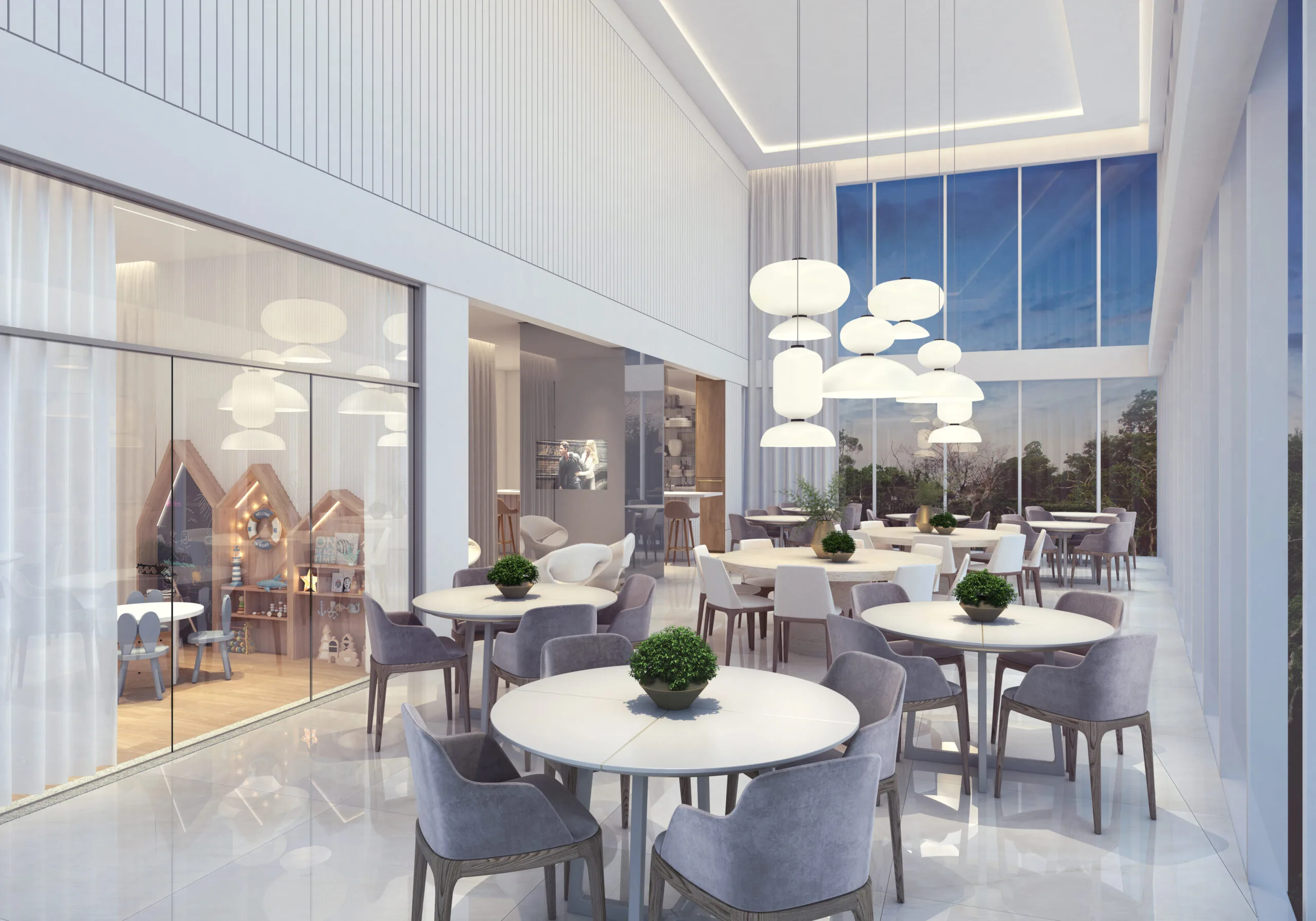 The tower itself functions as a vertical resort: residents access a spa complex with massage and beauty facilities, dual swimming pools (adult and children’s), and a gourmet terrace fitted with pergola for sunset entertaining. Additional leisure infrastructure includes a home cinema, games room, fully equipped gymnasium, and a wine cellar integrated into the communal spaces. The building’s design incorporates vertical spa terracing and water features throughout, reinforcing the biophilic intent articulated in the architectural brief.
