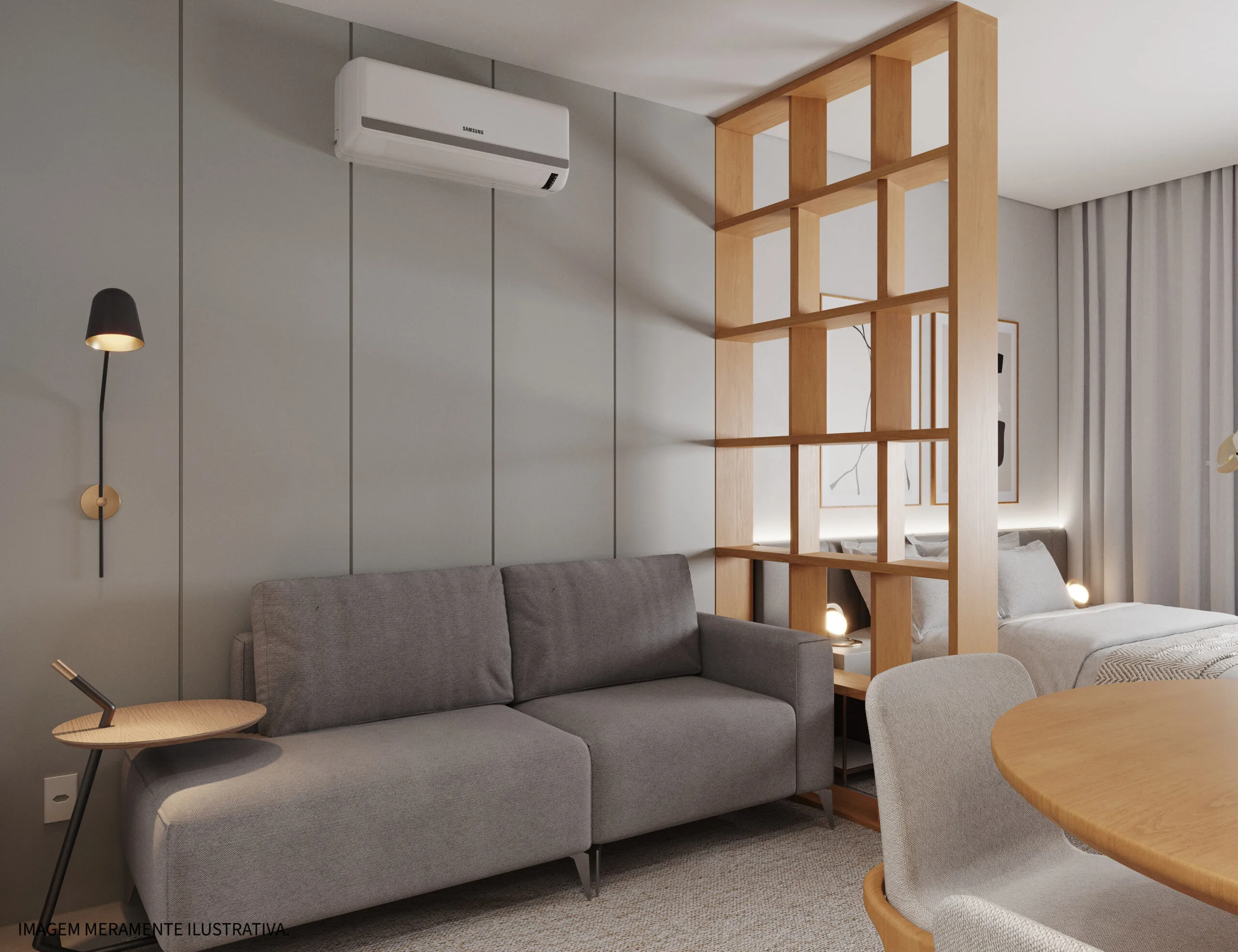 This 34 m² studio at BOSC Ecovillage represents a new paradigm in Brazilian residential investment: a turnkey, technology-enabled residence embedded within 53,000 m² of curated ecological landscape. Scheduled for completion in September 2028, the unit features acoustic drywall insulation engineered for 20% superior sound dampening, solar-heated water systems, and a private balcony overlooking the development’s expansive green infrastructure.