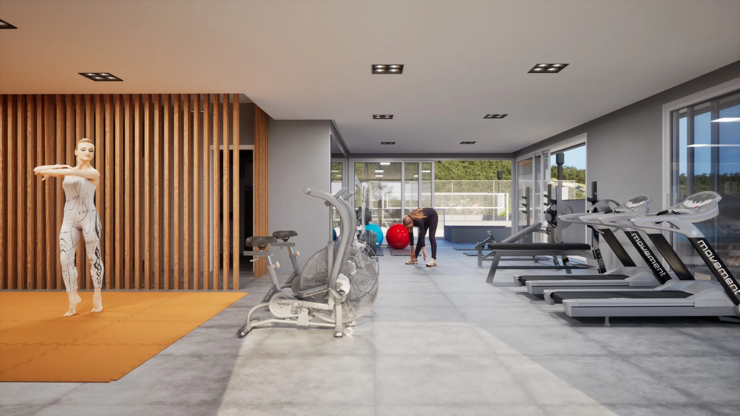 The development spans three towers and 28 distinct amenity zones, including a heated lap pool, crossfit training area, home cinema, sauna, and multiple party halls. A fire pit lounge, Zen garden, and rooftop spaces provide varied social settings, while a gamer lounge and recording studio cater to digital-native residents. The scale and diversity of shared facilities elevate this beyond conventional condominium living.