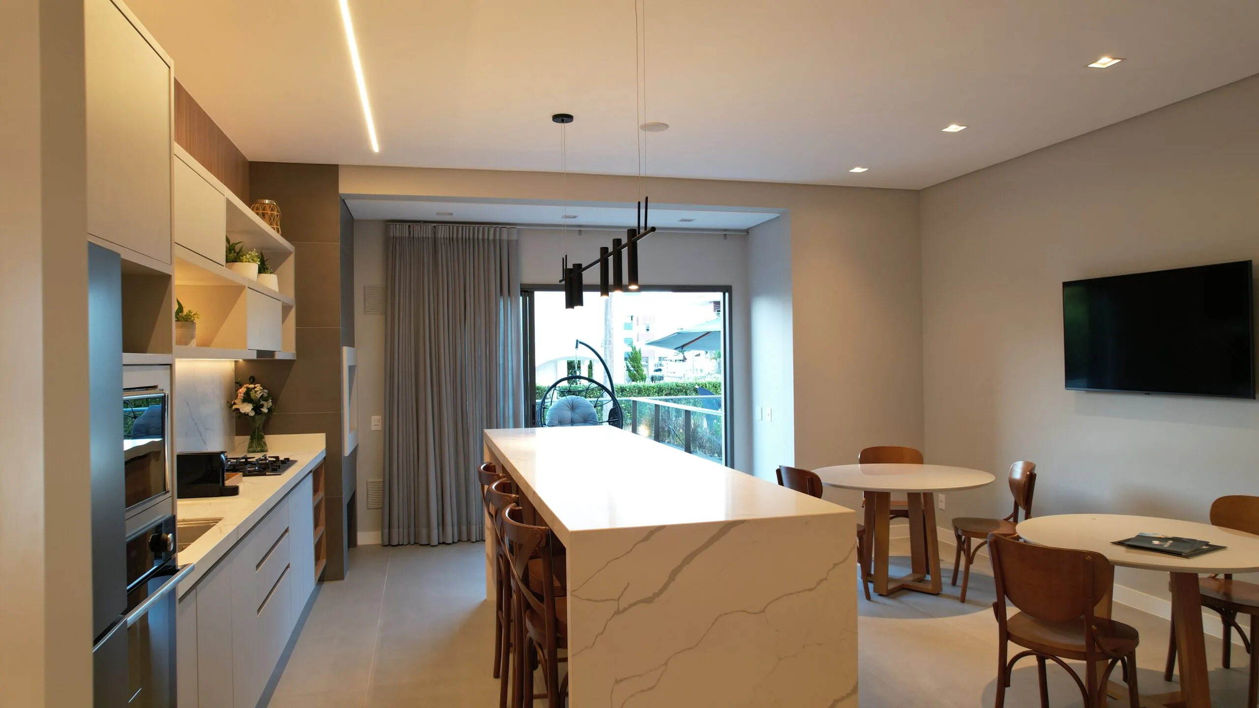 Smartly designed with custom built-ins to maximize space and flow, this area seamlessly connects with a spacious balcony featuring a built-in BBQ — the perfect setting for hosting friends or enjoying weekend family cookouts.