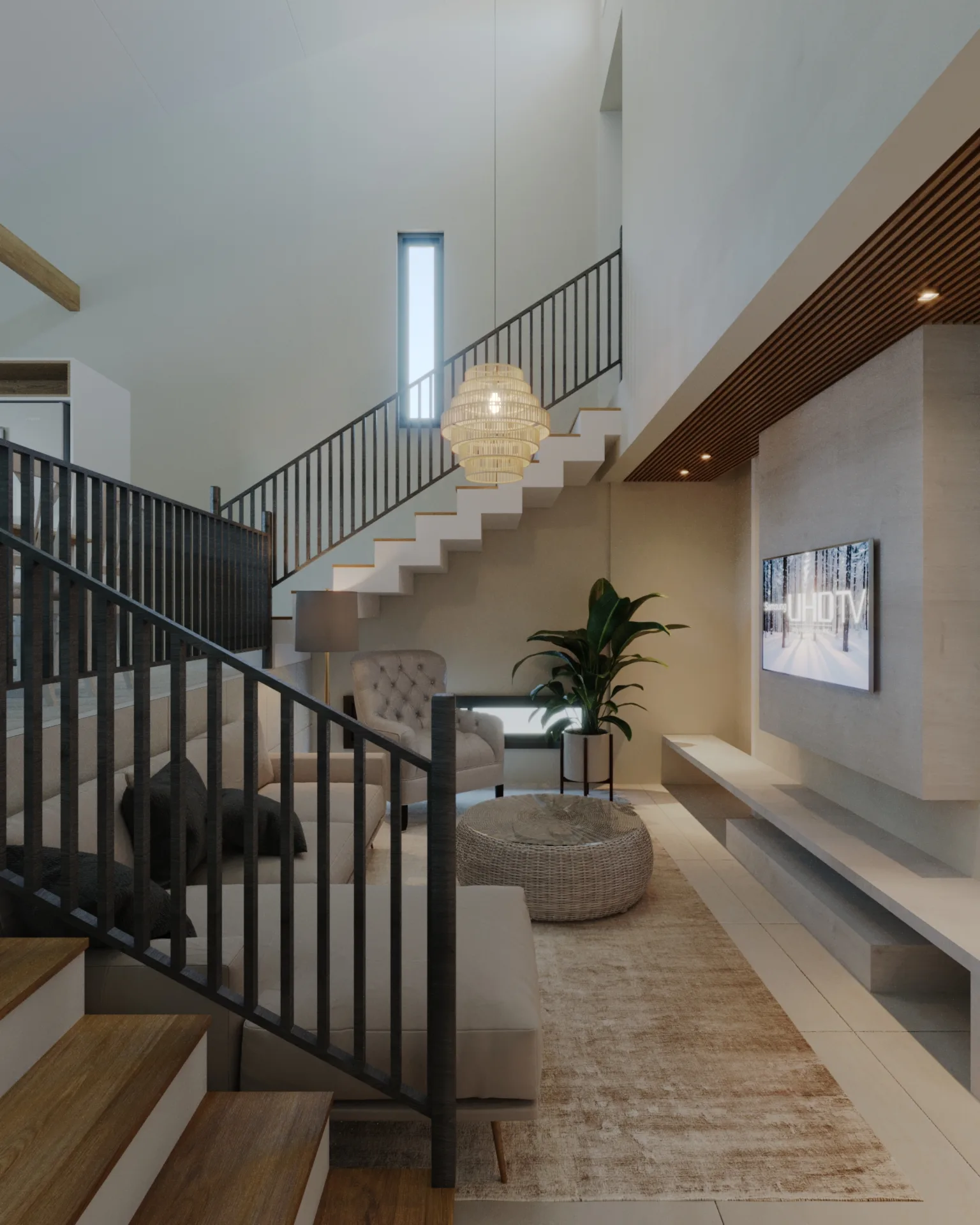 This 110 m² residence by Elite Homes exemplifies contemporary Brazilian residential design, anchored by soaring double-height ceilings that amplify both volume and natural light. The floor plan accommodates two bedrooms, including a master suite, alongside two full bathrooms — a configuration optimized for owner occupancy or short-term rental performance.