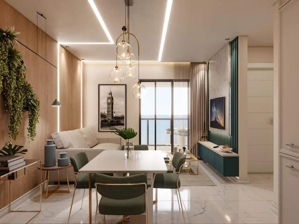 This 62 m² residence at Gran Sapphire Residence offers two en-suite bedrooms, a functional layout optimized for both owner occupancy and short-term rental performance. The unit includes split air conditioning pre-installation, porcelain tile flooring throughout, and a private balcony with integrated barbecue grill. Accessibility features and plaster finishes reflect contemporary construction standards.