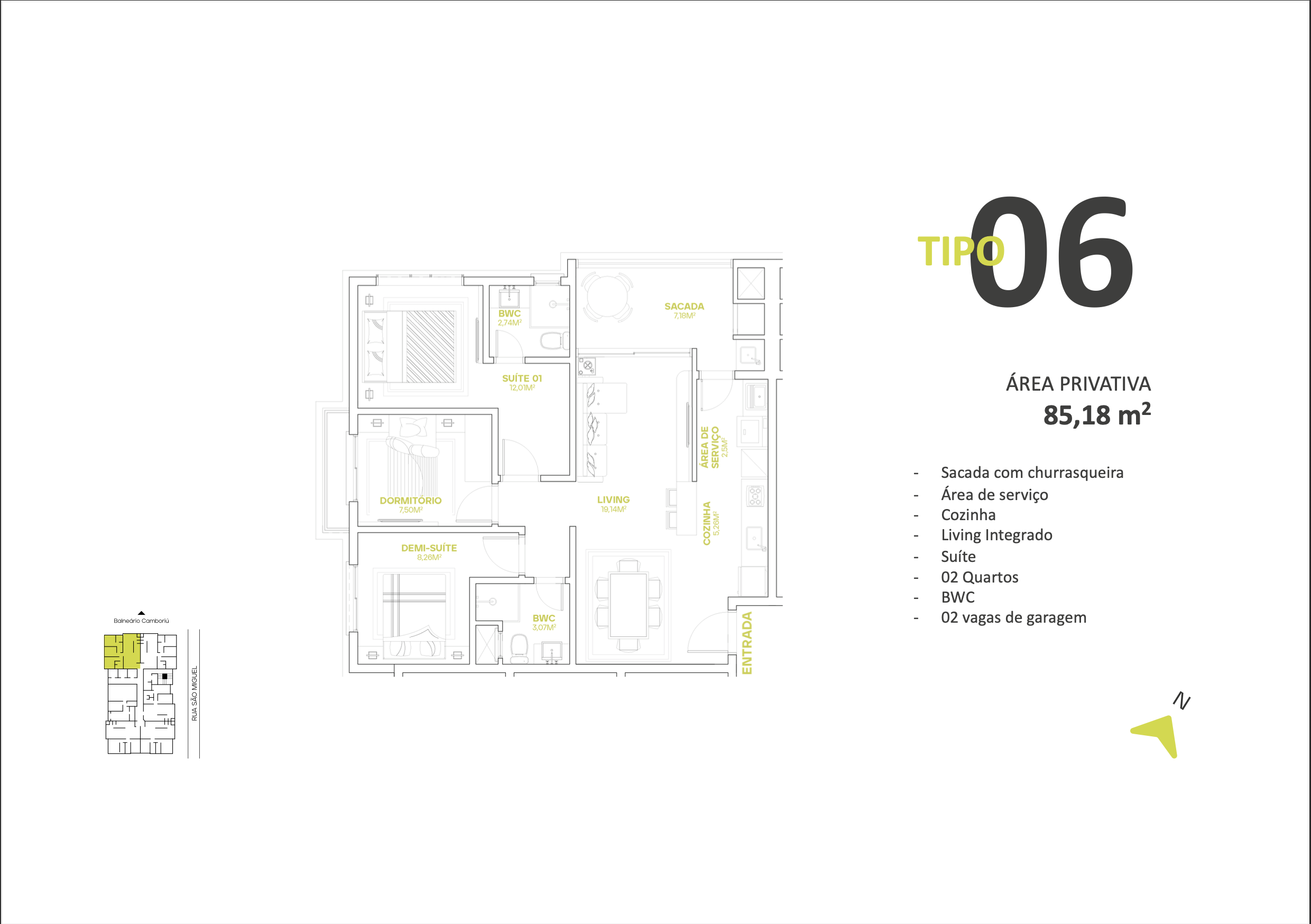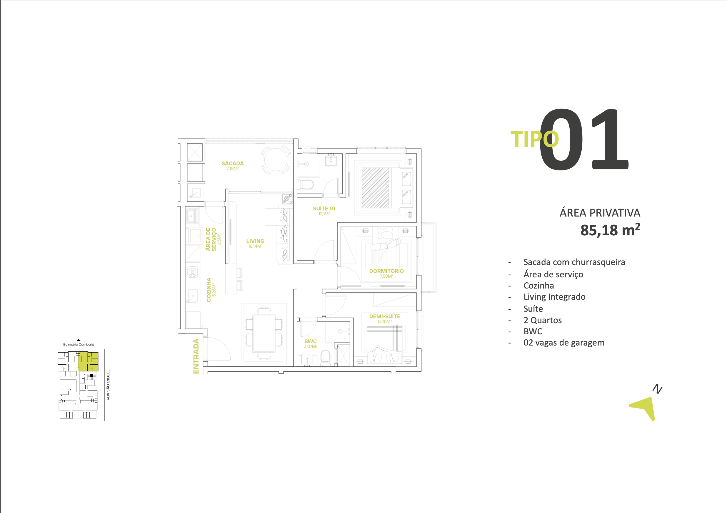Up to R$ 1,533,935 on higher floors.3-Bedroom Units (85 m²)