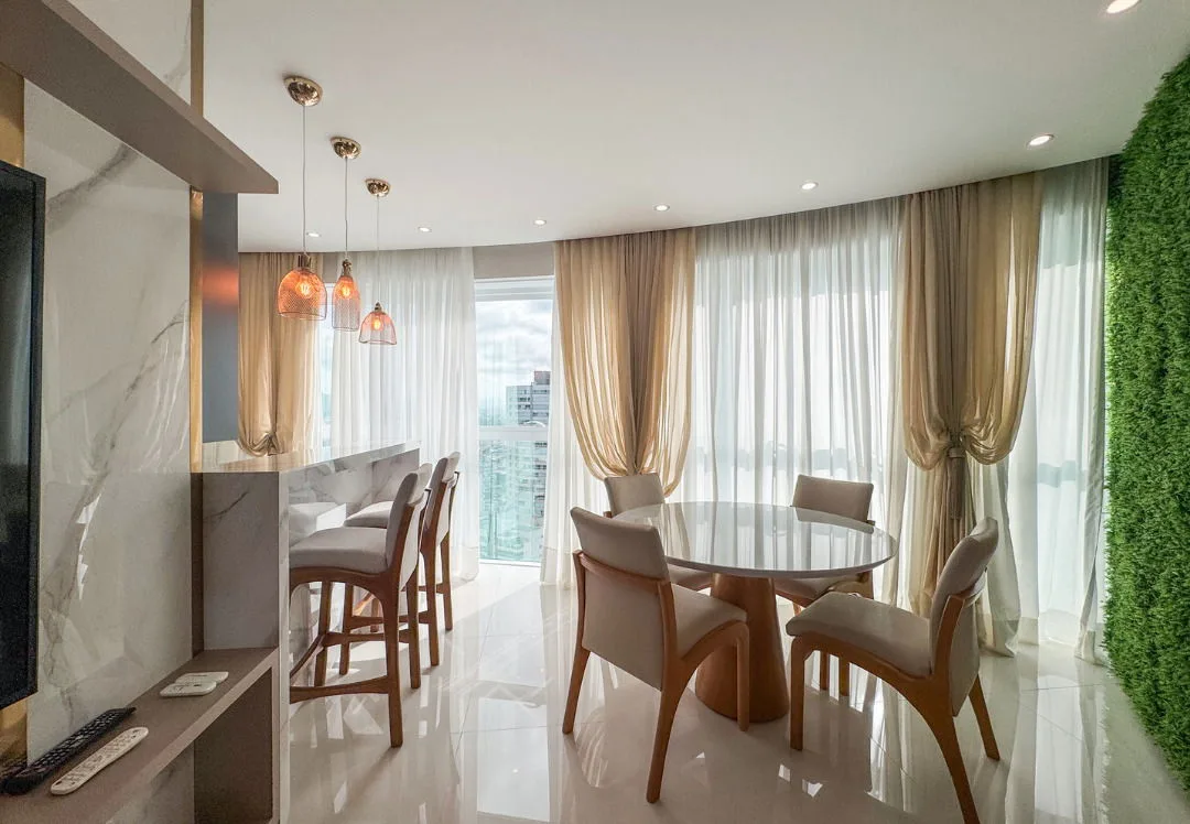 This three-bedroom apartment at Magnifique Tower represents a rare convergence of location, design pedigree, and investment fundamentals. Delivered furnished and finished to exacting standards, the 138.64 m² private area unfolds as an open-plan composition — living and kitchen spaces flow seamlessly, framed by floor-to-ceiling glazing that captures the energy of Centro below. Each of the three bedrooms features en-suite facilities, ensuring privacy and functionality for multigenerational use or executive rental positioning.