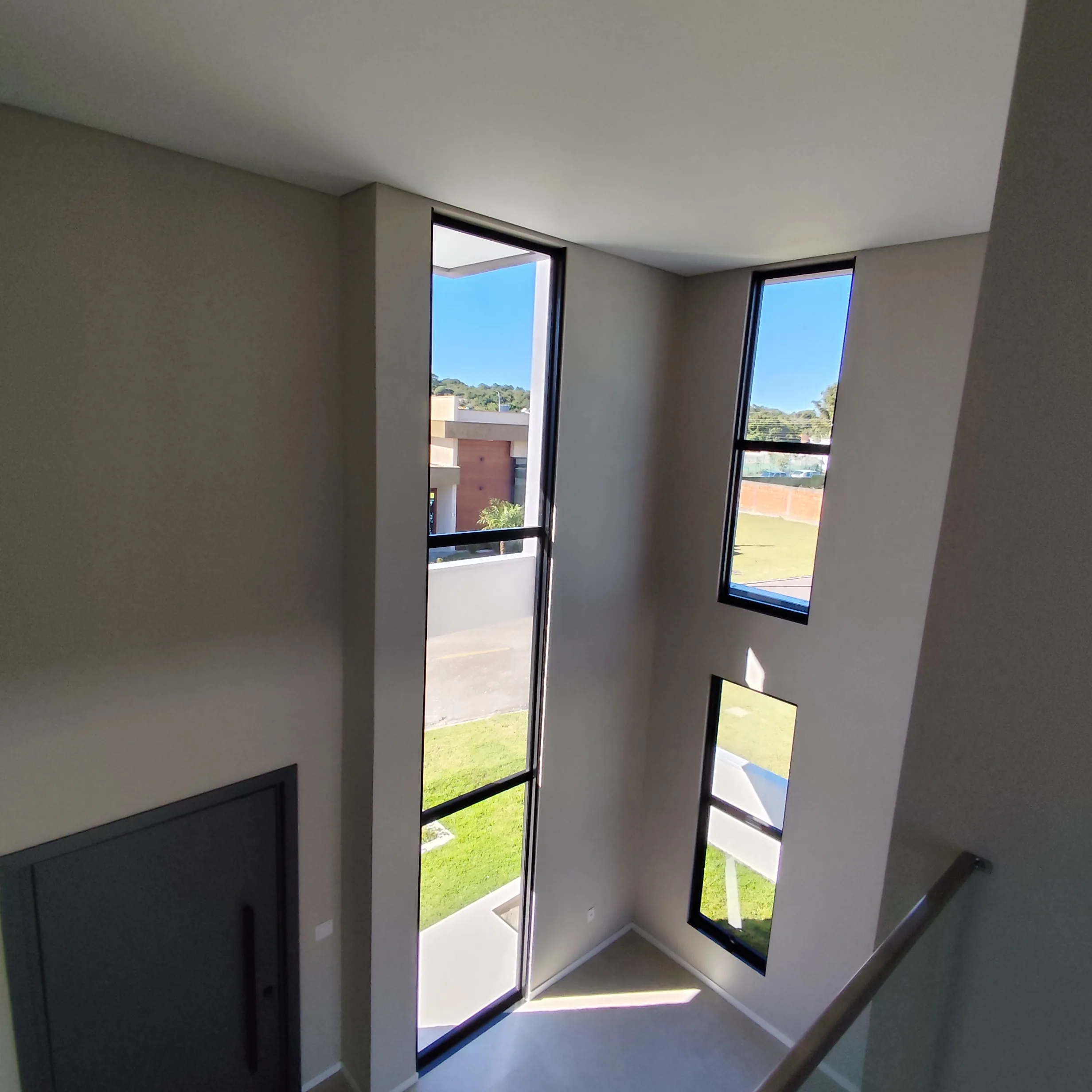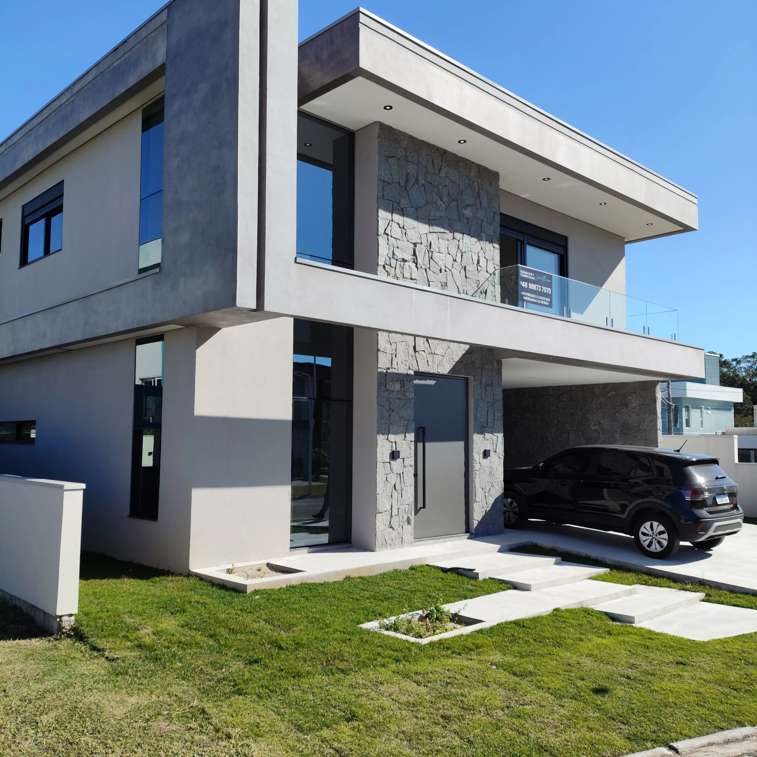 This 2025-completed residence presents a compelling case for families seeking both security and sophistication in northern Florianópolis. The 261 m² built area sits within a 423 m² private plot, anchored by a double-height living pavilion with east-facing orientation that captures morning light across open-plan social spaces.