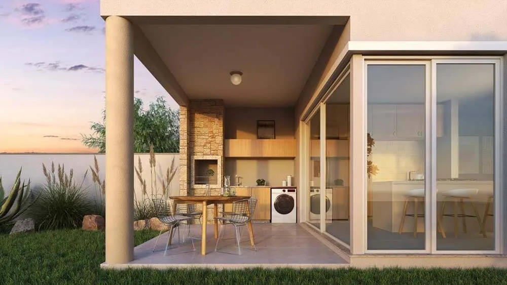 Sardegna Eco Residence presents 150 m² of thoughtfully calibrated living space within Jardim Campeche’s established residential fabric. The three-bedroom floor plan integrates open-plan reception rooms with a contemporary kitchen, separated sleeping quarters, and a dedicated laundry. Porcelain tile spans the ground floor, while vinyl flooring defines the upper level. Acoustic-insulated glazing and integrated shutters ensure privacy and thermal performance across all bedrooms.