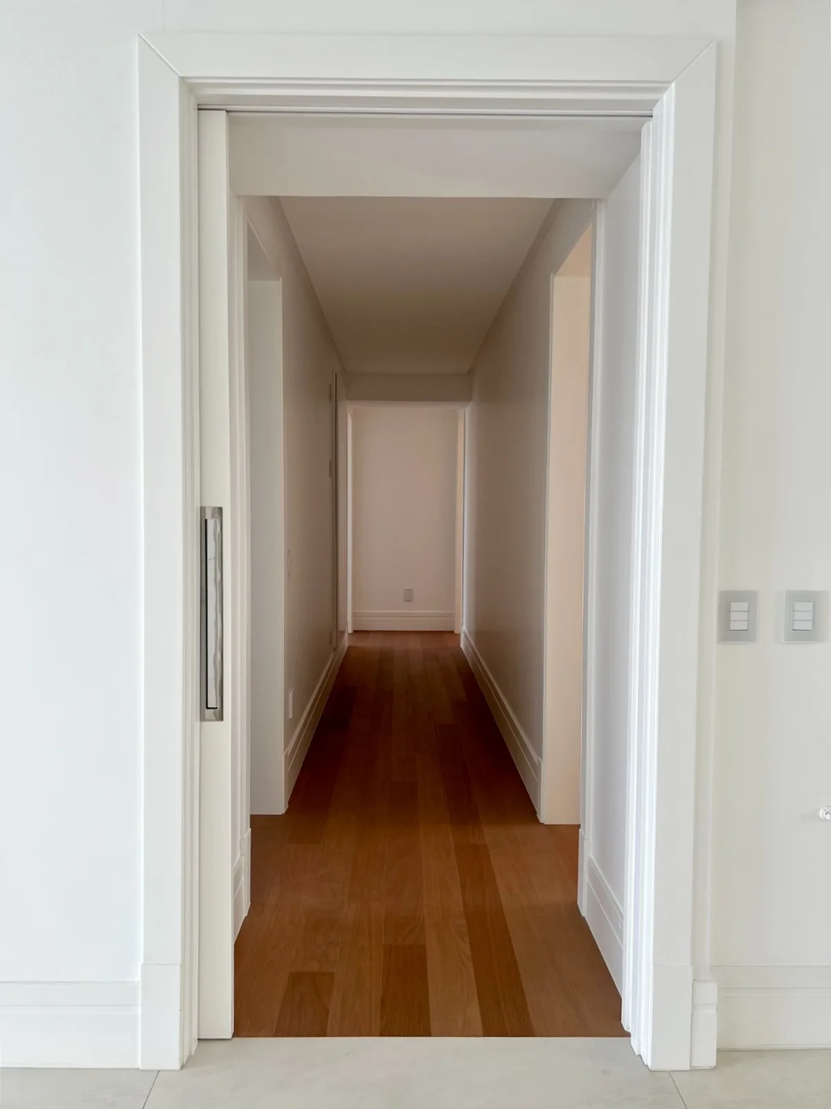 Unit 1302 occupies the twenty-first floor of Splendido, Cechinel’s signature oceanfront tower in the coveted Pioneiros district. The 216 m² floor plan accommodates four suites — two commanding direct ocean sightlines — alongside a powder room, integrated living and dining zones, and a gourmet kitchen equipped with a charcoal grill. Porcelain tile flooring (1.2 m × 1.2 m) defines the social areas; hardwood anchors the private quarters. Bold aluminum window frames fitted with TrueColor® glass up to 12 mm deliver unobstructed panoramic vistas while acoustic insulation ensures absolute tranquility.